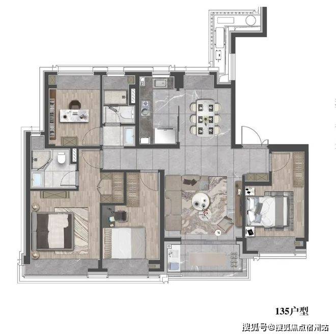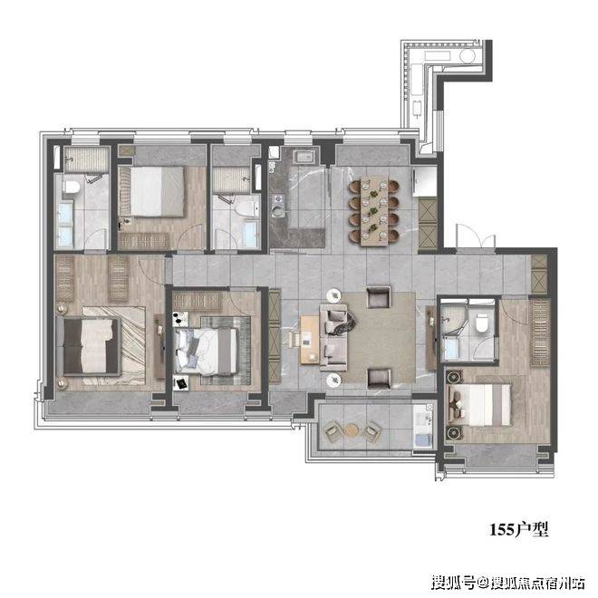 项目规划11栋8-17层小高层,全部坐北朝南、点板结合布局,最大楼间距超60米,保障每户采光与通风。外立面采用银灰铝板+三玻两腔LOW-E玻璃,局部干挂石材到顶,兼具颜值与节能性能(节能指标较普通住宅提升20%)。精装标准堪称顶配:大金VRV-S系列中央空调、德国威能地暖、霍尼韦尔新风系统三大件齐全;厨房西门子五件套、弗兰卡龙头水槽,卫浴杜拉维特智能马桶、汉斯格雅花洒,全屋墙布交付,细节拉满品质感。户型覆盖83㎡2+1房至156㎡四房三卫,得房率76%-80%,全部一梯两户或两梯两户设计,适配从二人世界到三代同堂的全生命周期